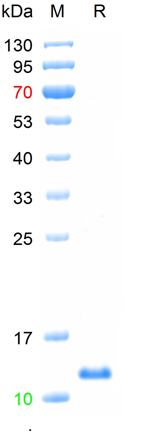 The purity of the protein is greater than 90% as determined by reducing SDS-PAGE.