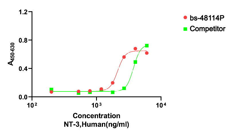 The protein encoded by this gene is a member of the neurotrophin family, that controls survival and differentiation of mammalian neurons. This protein is closely related to both nerve growth factor and brain-derived neurotrophic factor. It may be involved in the maintenance of the adult nervous system, and may affect development of neurons in the embryo when it is expressed in human placenta. NTF3-deficient mice generated by gene targeting display severe movement defects of the limbs. The mature peptide of this protein is identical in all mammals examined including human, pig, rat and mouse. [provided by RefSeq, Jul 2008]. SWISS: P20783 Gene ID: 4908 一种内源型神经递质,分子量为28kDa的碱性多肽,属神经营养蛋白家族。与NGF和BDNF具有序列同源性,为培养的神经嵴细胞的促细胞分裂剂。此抗体与NGF、BDNF无交叉反应。 |