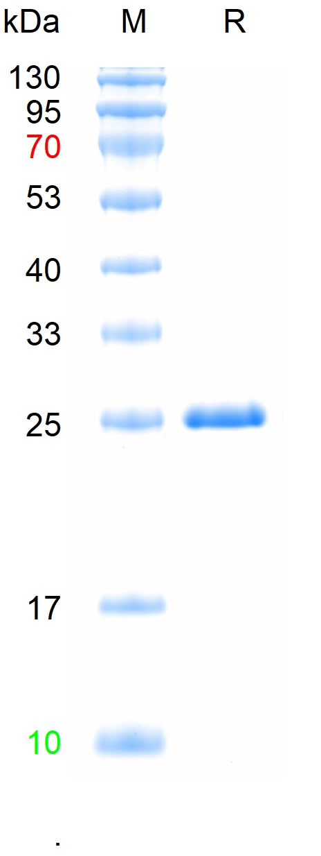 The purity of the protein is greater than 90% as determined by reducing SDS-PAGE.