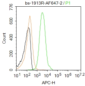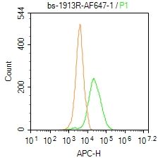 Primary Antibody (green line): Rabbit Anti-MMP8 /AF647 Conjugated antibody (bs-1913R-BF647)