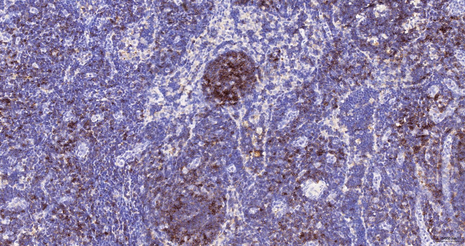 Paraformaldehyde-fixed, paraffin embedded Human Lymph; Antigen retrieval by boiling in sodium citrate buffer (pH6.0) for 15 min; The section was incubated with CD45 Polyclonal Antibody (bs-0522R-HRP) at 1:200 overnight at 4°C, and DAB (C-0010) staining.