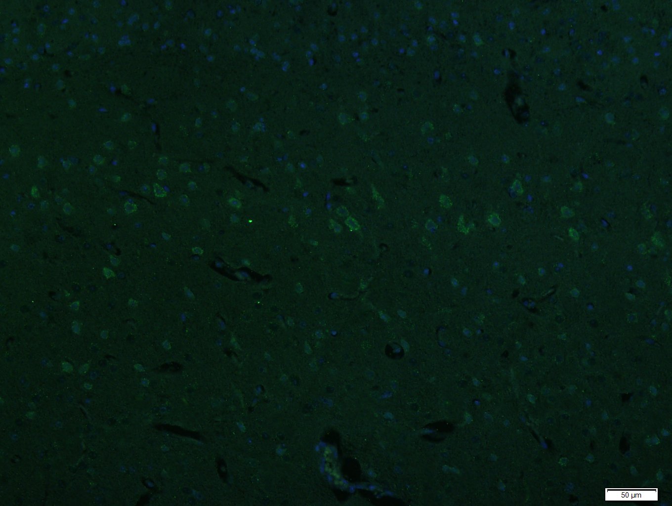 Paraformaldehyde-fixed, paraffin embedded (Mouse brain); Antigen retrieval by boiling in sodium citrate buffer (pH6.0) for 15min; Block endogenous peroxidase by 3% hydrogen peroxide for 20 minutes; Blocking buffer (normal goat serum) at 37°C for 30min; Incubation: Anti-NHLRC2 Antibody, conjugated (bs-9332R-A488) 1:400, 1.5 hours at 37°C; DAPI (5ug/ml, blue, C-0033) was used to stain the cell nuclei.