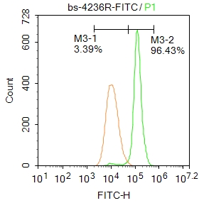 Primary Antibody (green line): Rabbit Anti-ADAM17 antibody (bs-4236R-FITC)