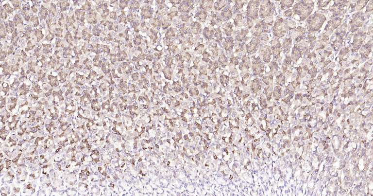Immunohistochemical analysis of paraffin embedded rat stomach tissue slide using IHC0272R (Rat Calreticulin IHC Kit).