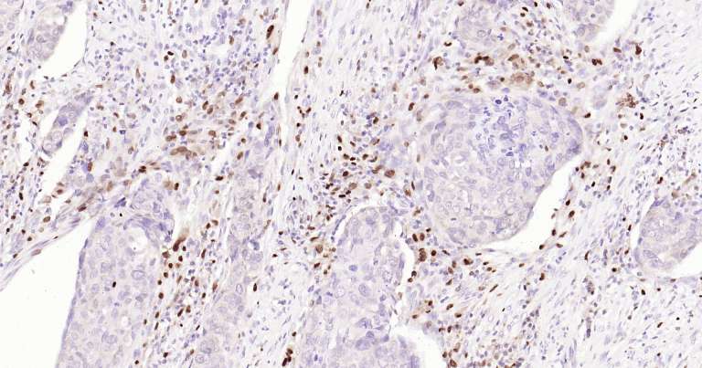 Immunohistochemical analysis of paraffin embedded human esophageal cancer tissue slide using IHC0275 (5 Lipoxygenase IHC Kit).
