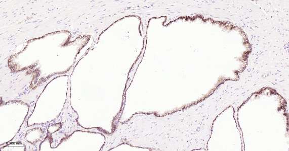 Immunohistochemical analysis of paraffin embedded human prostate cancer tissue slide using IHC0289H (Human Beta catenin IHC Kit).