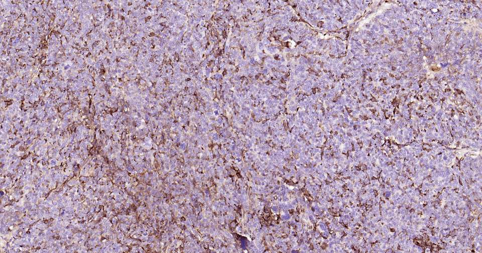 Immunohistochemical analysis of paraffin embedded human ovarian serous carcinoma tissue slide using IHC0303H (Human CD163 Kit).