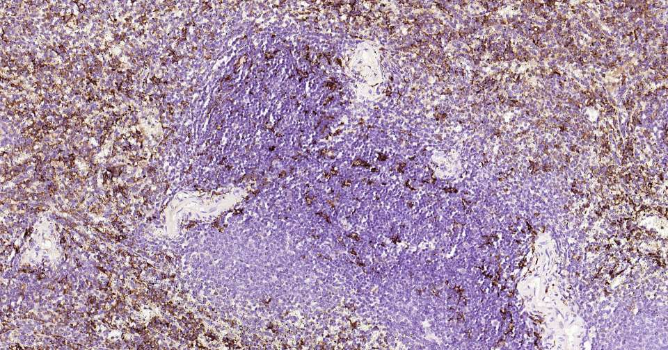 Immunohistochemical analysis of paraffin embedded human spleen tissue slide using IHC0303H (Human CD163 Kit).