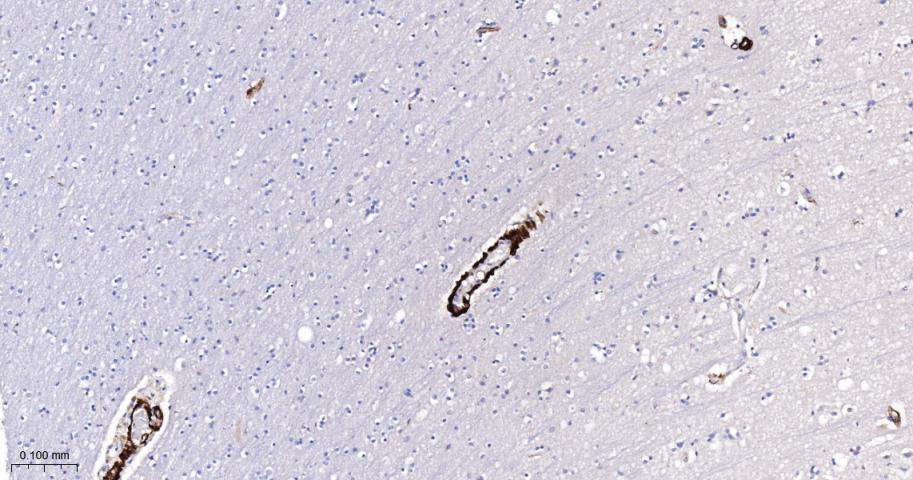 Paraformaldehyde-fixed, paraffin embedded Human Cerebrum; Antigen retrieval by boiling in sodium citrate buffer (pH6.0) for 15 min; The section was incubated with SM22 Monoclonal Antibody, Unconjugated (bsm-61818R) at 1:200 overnight at 4°C, followed by conjugation to the bs-0295G-HRP and DAB (C-0010) staining.