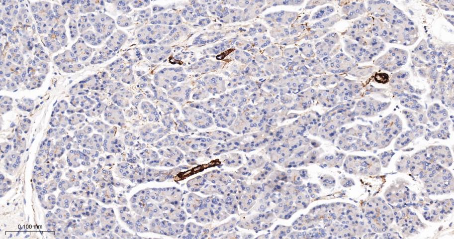 Paraformaldehyde-fixed, paraffin embedded Human Pancreas; Antigen retrieval by boiling in sodium citrate buffer (pH6.0) for 15 min; The section was incubated with SM22 Monoclonal Antibody, Unconjugated (bsm-61818R) at 1:200 overnight at 4°C, followed by conjugation to the bs-0295G-HRP and DAB (C-0010) staining.