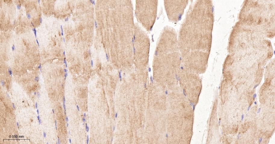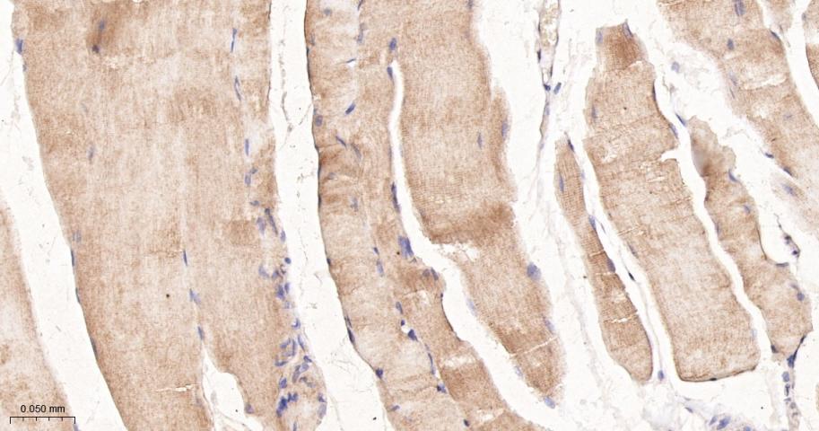 Paraformaldehyde-fixed, paraffin embedded Mouse Skeletal muscle; Antigen retrieval by boiling in sodium citrate buffer (pH6.0) for 15 min; The section was incubated with IRS-2 Monoclonal Antibody, Unconjugated (bsm-61898R) at 1:200 overnight at 4°C, followed by conjugation to the bs-0295G-HRP and DAB (C-0010) staining.