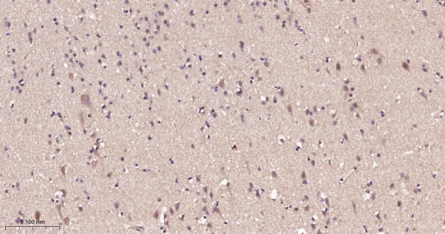 Paraformaldehyde-fixed, paraffin embedded Human Cerebrum; Antigen retrieval by boiling in sodium citrate buffer (pH6.0) for 15 min; The section was incubated with IRS-2 Monoclonal Antibody, Unconjugated (bsm-61898R) at 1:200 overnight at 4°C, followed by conjugation to the bs-0295G-HRP and DAB (C-0010) staining.