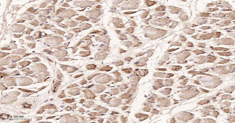 Paraformaldehyde-fixed, paraffin embedded Human Skeletal muscle; Antigen retrieval by boiling in sodium citrate buffer (pH6.0) for 15 min; The section was incubated with IRS-2 Monoclonal Antibody, Unconjugated (bsm-61898R) at 1:200 overnight at 4°C, followed by conjugation to the bs-0295G-HRP and DAB (C-0010) staining.