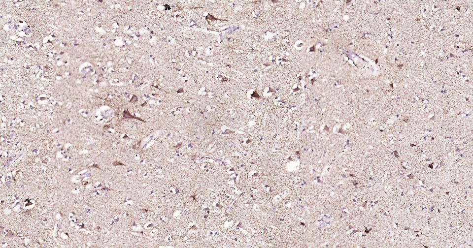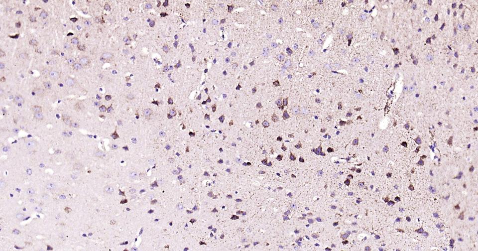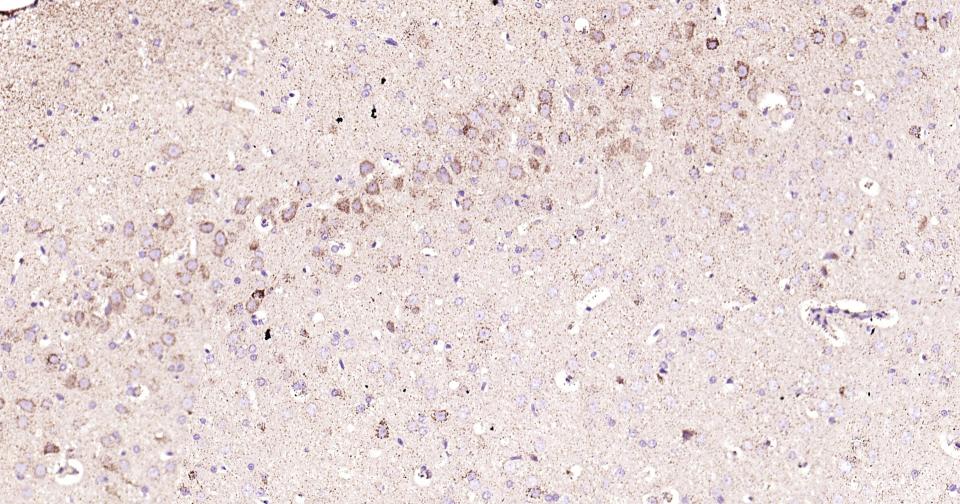 Paraformaldehyde-fixed, paraffin embedded Rat Cerebrum; Antigen retrieval by boiling in sodium citrate buffer (pH6.0) for 15 min; Antibody incubation with ABAT Monoclonal Antibody, Unconjugated(bsm-62069R) at 1:200 overnight at 4°C, followed by conjugation to the bs-0295G-HRP and DAB (C-0010) staining.