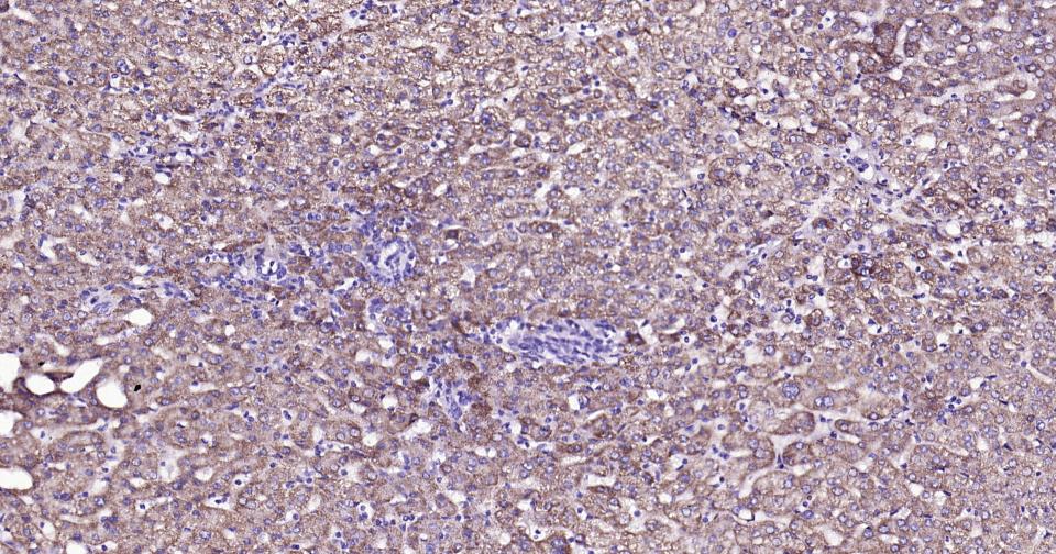Paraformaldehyde-fixed, paraffin embedded Rat Liver; Antigen retrieval by boiling in sodium citrate buffer (pH6.0) for 15 min; Antibody incubation with ABAT Monoclonal Antibody, Unconjugated(bsm-62069R) at 1:200 overnight at 4°C, followed by conjugation to the bs-0295G-HRP and DAB (C-0010) staining.