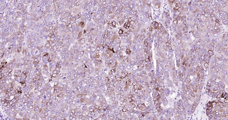 Paraformaldehyde-fixed, paraffin embedded Human Liver Cancer; Antigen retrieval by boiling in sodium citrate buffer (pH6.0) for 15 min; Antibody incubation with ABAT Monoclonal Antibody, Unconjugated(bsm-62069R) at 1:200 overnight at 4°C, followed by conjugation to the bs-0295G-HRP and DAB (C-0010) staining.