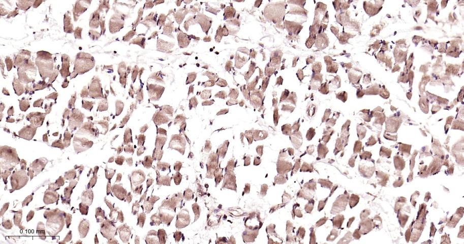 Paraformaldehyde-fixed, paraffin embedded Human Skeletal muscle; Antigen retrieval by boiling in sodium citrate buffer (pH6.0) for 15 min; Antibody incubation with PSMA2 Monoclonal Antibody, Unconjugated(bsm-62091R) at 1:200 overnight at 4°C, followed by conjugation to the bs-0295G-HRP and DAB (C-0010) staining.
