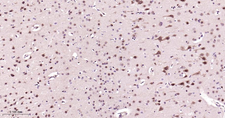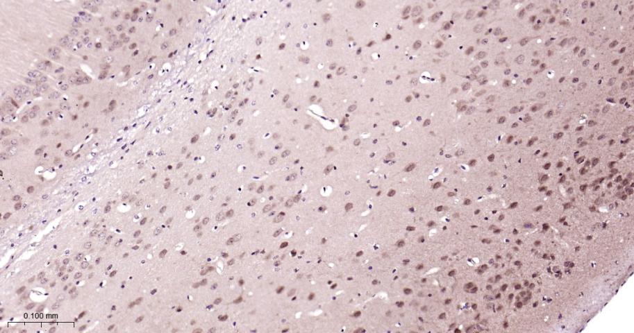 Paraformaldehyde-fixed, paraffin embedded Rat Cerebrum; Antigen retrieval by boiling in sodium citrate buffer (pH6.0) for 15 min; Antibody incubation with PSMA2 Monoclonal Antibody, Unconjugated(bsm-62091R) at 1:200 overnight at 4°C, followed by conjugation to the bs-0295G-HRP and DAB (C-0010) staining.