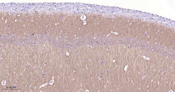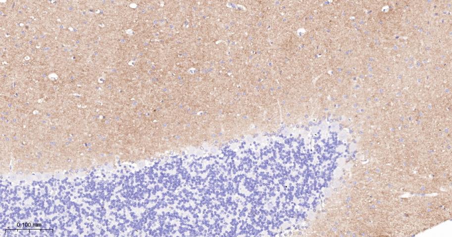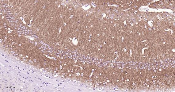 Paraformaldehyde-fixed, paraffin embedded Rat Cerebellum; Antigen retrieval by boiling in sodium citrate buffer (pH6.0) for 15 min; Antibody incubation with GluR1 Monoclonal Antibody, Unconjugated(bsm-62123R) at 1:200 overnight at 4°C, followed by conjugation to the bs-0295G-HRP and DAB (C-0010) staining.