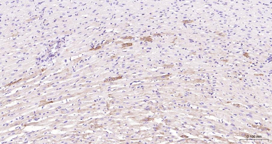 Paraformaldehyde-fixed, paraffin embedded Mouse Heart; Antigen retrieval by boiling in sodium citrate buffer (pH6.0) for 15 min; Antibody incubation with PAR-2 Monoclonal Antibody, Unconjugated(bsm-62143R) at 1:200 overnight at 4°C, followed by conjugation to the bs-0295G-HRP and DAB (C-0010) staining.