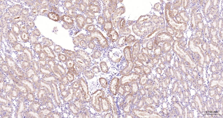 Paraformaldehyde-fixed, paraffin embedded Rat kidney; Antigen retrieval by boiling in sodium citrate buffer (pH6.0) for 15 min; Antibody incubation with LGR6 Monoclonal Antibody, Unconjugated(bsm-62179R) at 1:200 overnight at 4°C, followed by conjugation to the bs-0295G-HRP and DAB (C-0010) staining.