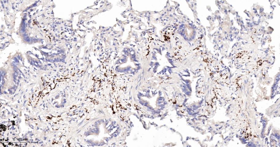 Paraformaldehyde-fixed, paraffin embedded Human lung; Antigen retrieval by boiling in sodium citrate buffer (pH6.0) for 15 min; Antibody incubation with LGR6 Monoclonal Antibody, Unconjugated(bsm-62179R) at 1:200 overnight at 4°C, followed by conjugation to the bs-0295G-HRP and DAB (C-0010) staining.