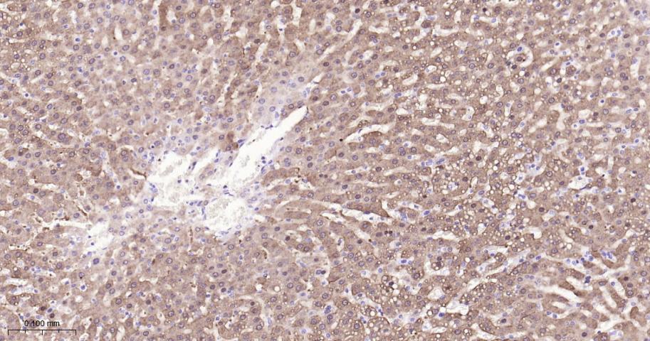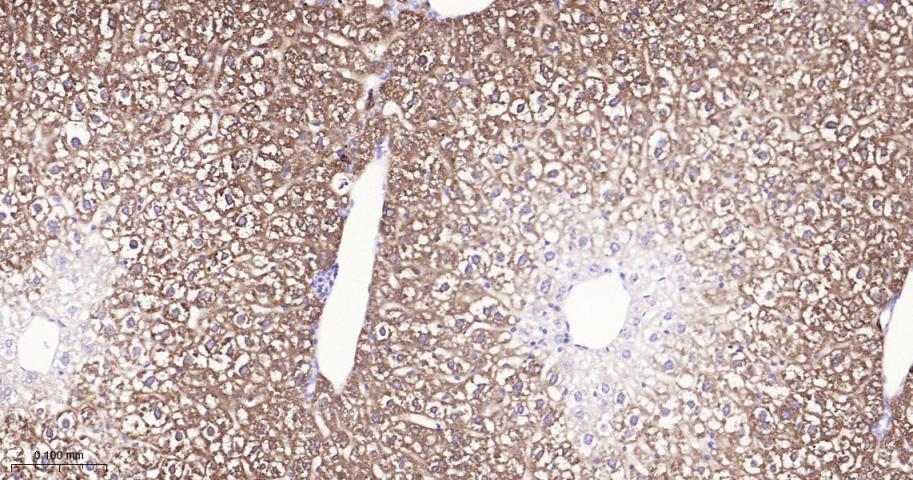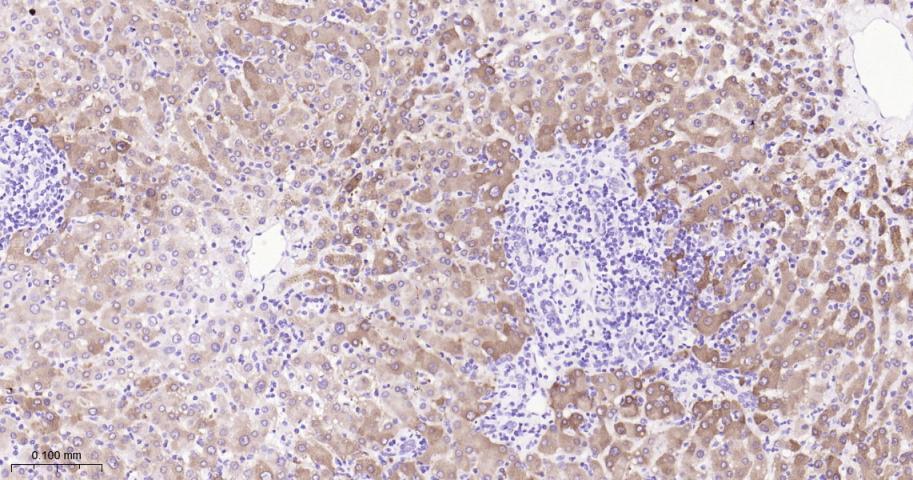 Paraformaldehyde-fixed, paraffin embedded Mouse Liver; Antigen retrieval by boiling in sodium citrate buffer (pH6.0) for 15 min; Antibody incubation with Argininosuccinate synthase 1 Monoclonal Antibody, Unconjugated(bsm-62194R) at 1:200 overnight at 4°C, followed by conjugation to the bs-0295G-HRP and DAB (C-0010) staining.