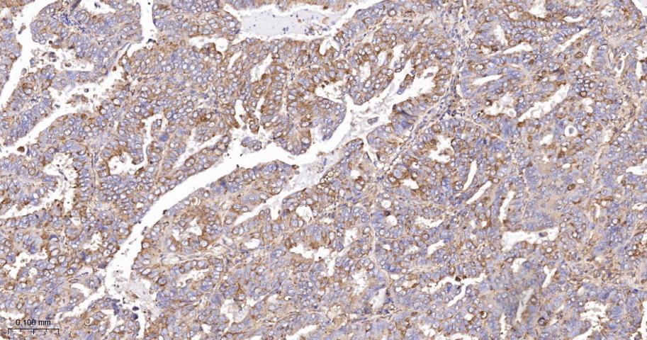 Paraformaldehyde-fixed, paraffin embedded Human Endometrial Cancer; Antigen retrieval by boiling in sodium citrate buffer (pH6.0) for 15 min; The section was incubated with FADS1 Monoclonal Antibody, Unconjugated (bsm-62440R) at 1:200 overnight at 4°C, followed by conjugation to the bs-0295G-HRP and DAB (C-0010) staining.