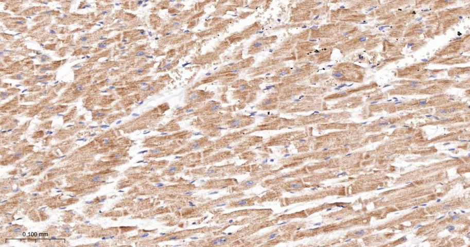 Paraformaldehyde-fixed, paraffin embedded Human Heart; Antigen retrieval by boiling in sodium citrate buffer (pH6.0) for 15 min; The section was incubated with FADS1 Monoclonal Antibody, Unconjugated (bsm-62440R) at 1:200 overnight at 4°C, followed by conjugation to the bs-0295G-HRP and DAB (C-0010) staining.