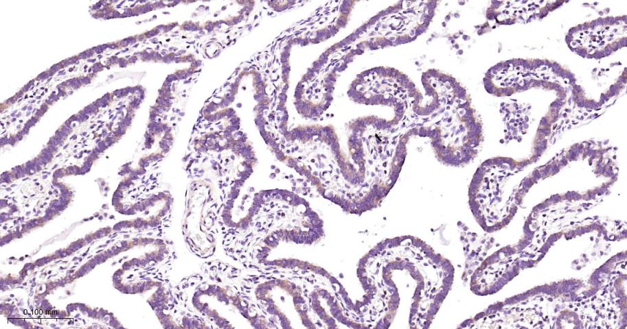 Paraformaldehyde-fixed, paraffin embedded Human fallopian tube; Antigen retrieval by boiling in sodium citrate buffer (pH6.0) for 15 min; Antibody incubation with CARS1 Monoclonal Antibody, Unconjugated(bsm-62444R) at 1:200 overnight at 4°C, followed by conjugation to the bs-0295G-HRP and DAB (C-0010) staining.