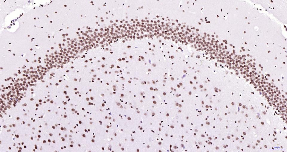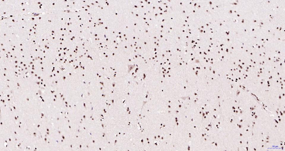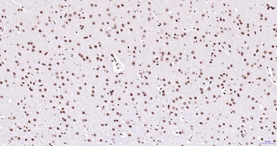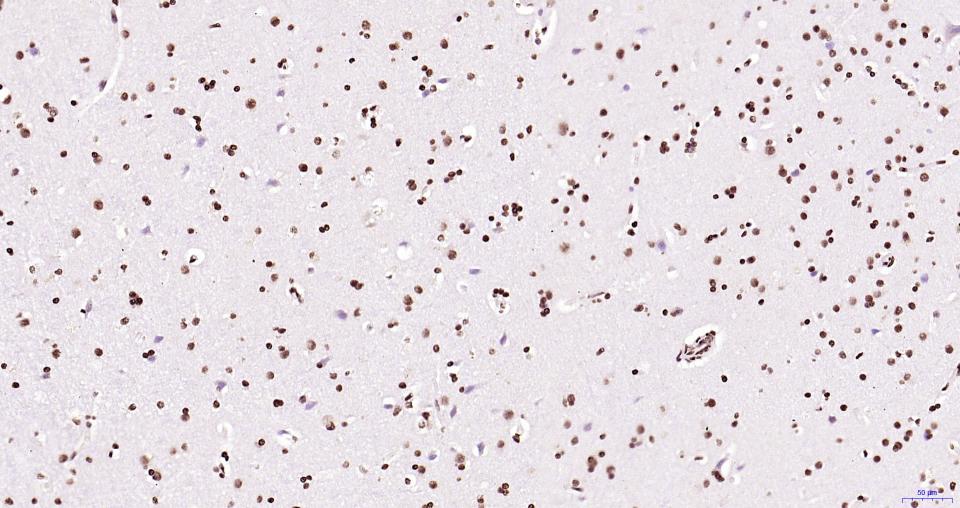 Paraformaldehyde-fixed, paraffin embedded Rat cerebrum; Antigen retrieval by boiling in sodium citrate buffer (pH6.0) for 15 min; Antibody incubation with Acetyl-Histone H3.1 (Lys28) Monoclonal Antibody, Unconjugated(bsm-62460R) at 1:200 overnight at 4°C, followed by conjugation to the SP Kit(Rabbit, SP-0023) and DAB (C-0010) staining.