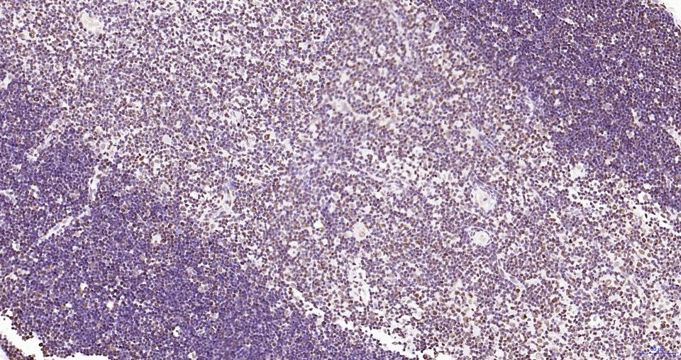 Paraformaldehyde-fixed, paraffin embedded Mouse thymus; Antigen retrieval by boiling in sodium citrate buffer (pH6.0) for 15 min; Antibody incubation with Acetyl-Histone H3.1 (Lys28) Monoclonal Antibody, Unconjugated(bsm-62460R) at 1:200 overnight at 4°C, followed by conjugation to the SP Kit(Rabbit, SP-0023) and DAB (C-0010) staining.