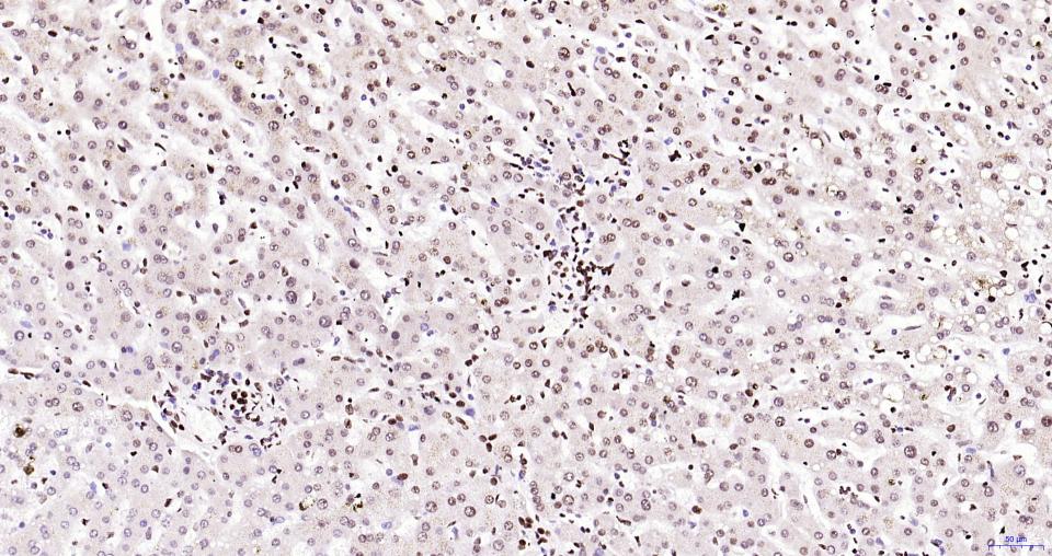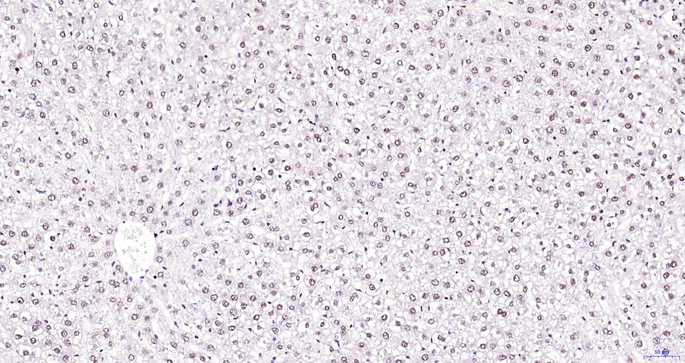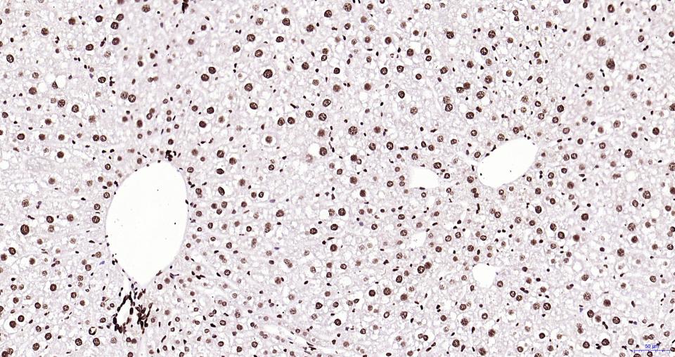 Paraformaldehyde-fixed, paraffin embedded Rat Liver; Antigen retrieval by boiling in sodium citrate buffer (pH6.0) for 15 min; Antibody incubation with Acetyl-Histone H3.1 (Lys28) Monoclonal Antibody, Unconjugated(bsm-62460R) at 1:200 overnight at 4°C, followed by conjugation to the SP Kit(Rabbit, SP-0023) and DAB (C-0010) staining.