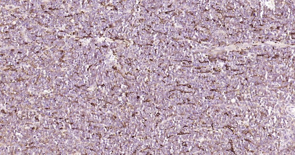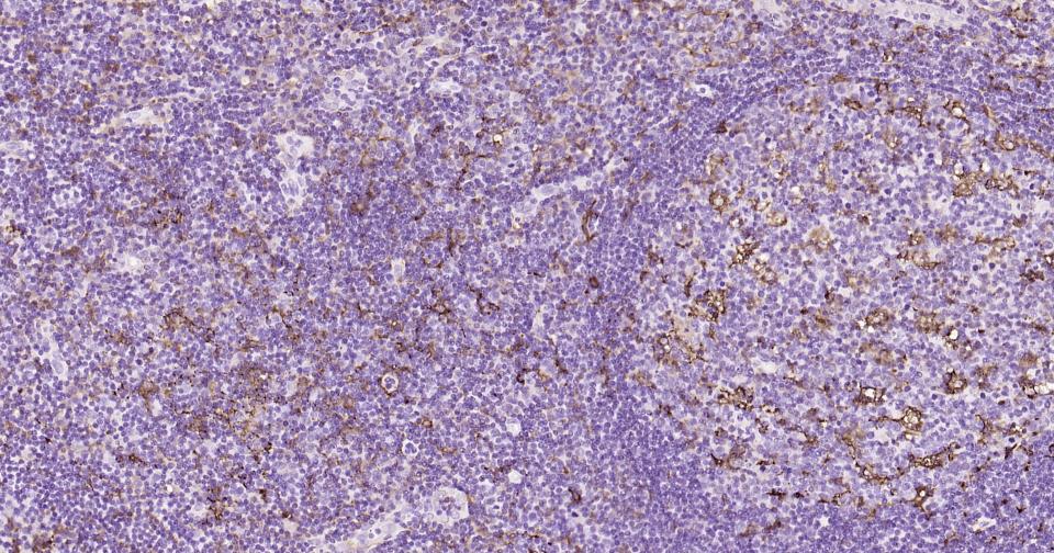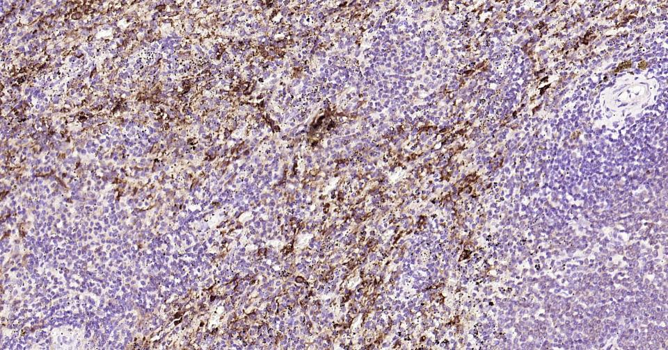 Paraformaldehyde-fixed, paraffin embedded Human Lymph; Antigen retrieval by boiling in sodium citrate buffer (pH6.0) for 15 min; Antibody incubation with CCR-2 Monoclonal Antibody, Unconjugated(bsm-62473R) at 1:200 overnight at 4°C, followed by conjugation to the bs-0295G-HRP and DAB (C-0010) staining.
