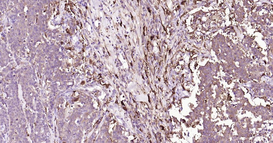 Paraformaldehyde-fixed, paraffin embedded Human Esophagus Cancer; Antigen retrieval by boiling in sodium citrate buffer (pH6.0) for 15 min; Antibody incubation with CCR-2 Monoclonal Antibody, Unconjugated(bsm-62473R) at 1:200 overnight at 4°C, followed by conjugation to the bs-0295G-HRP and DAB (C-0010) staining.