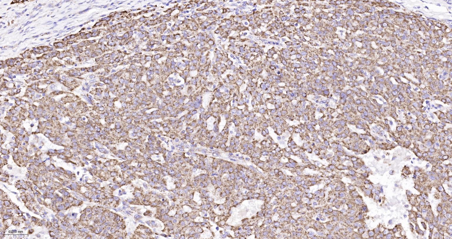 Paraformaldehyde-fixed, paraffin embedded Human Ovarian Cancer; Antigen retrieval by boiling in sodium citrate buffer (pH6.0) for 15 min; The section was incubated with KLK8 Monoclonal Antibody, Unconjugated (bsm-62551R) at 1:200 overnight at 4°C, followed by conjugation to the bs-0295G-HRP and DAB (C-0010) staining.