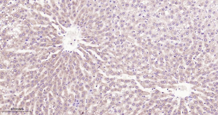 Paraformaldehyde-fixed, paraffin embedded Rat Liver; Antigen retrieval by boiling in sodium citrate buffer (pH6.0) for 15 min; Antibody incubation with UFM1 Monoclonal Antibody, Unconjugated(bsm-62583R) at 1:200 overnight at 4°C, followed by conjugation to the bs-0295G-HRP and DAB (C-0010) staining.