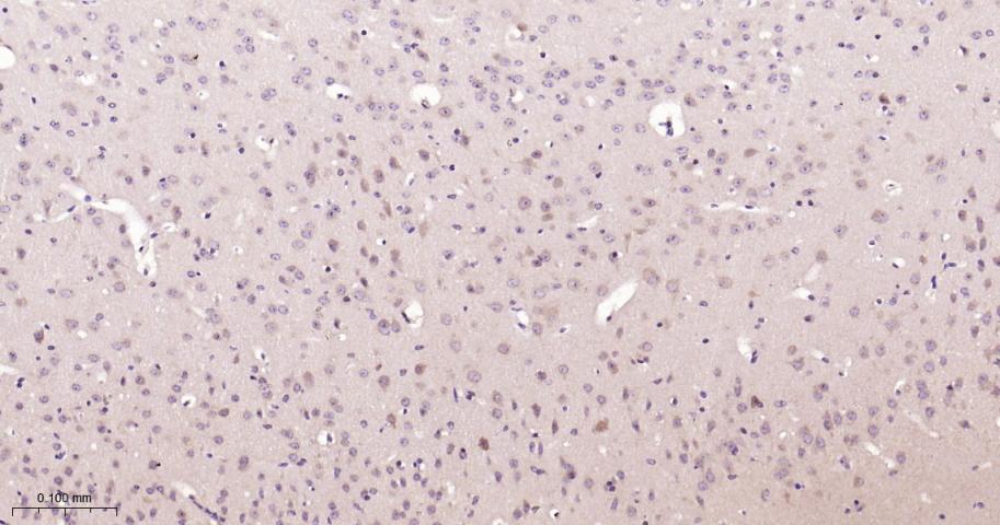 Paraformaldehyde-fixed, paraffin embedded Mouse Cerebrum; Antigen retrieval by boiling in sodium citrate buffer (pH6.0) for 15 min; Antibody incubation with UFM1 Monoclonal Antibody, Unconjugated(bsm-62583R) at 1:200 overnight at 4°C, followed by conjugation to the bs-0295G-HRP and DAB (C-0010) staining.