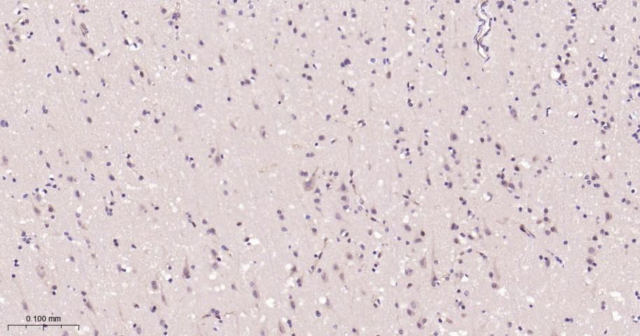 Paraformaldehyde-fixed, paraffin embedded Human Cerebrum; Antigen retrieval by boiling in sodium citrate buffer (pH6.0) for 15 min; Antibody incubation with UFM1 Monoclonal Antibody, Unconjugated(bsm-62583R) at 1:200 overnight at 4°C, followed by conjugation to the bs-0295G-HRP and DAB (C-0010) staining.