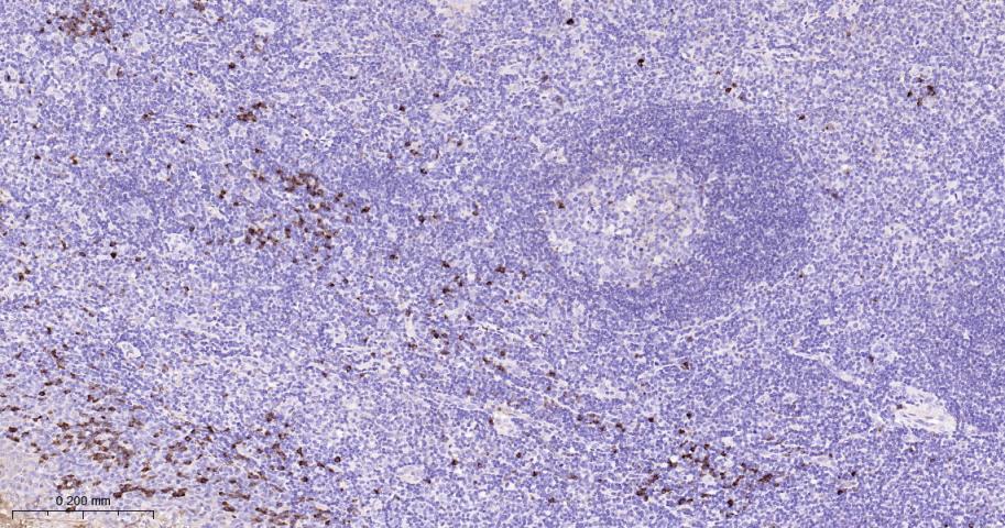 Paraformaldehyde-fixed, paraffin embedded Human Tonsil; Antigen retrieval by boiling in sodium citrate buffer (pH6.0) for 15 min; The section was incubated with Human IgG Monoclonal Antibody, Unconjugated (bsm-62714R) at 1:200 overnight at 4°C, followed by conjugation to the bs-0295G-HRP and DAB (C-0010) staining.