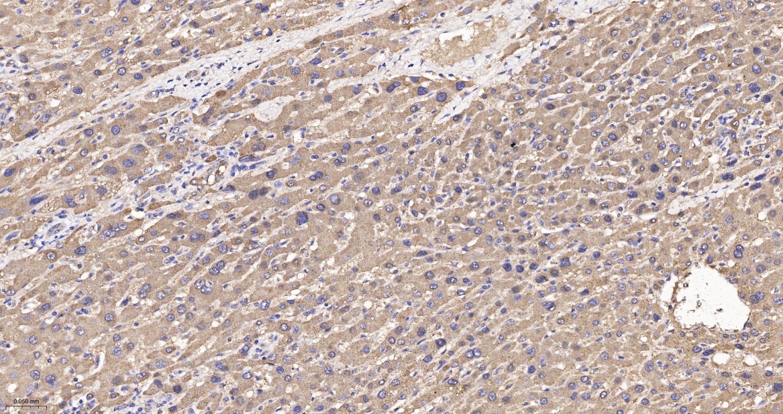 Paraformaldehyde-fixed, paraffin embedded Human Liver Cancer; Antigen retrieval by boiling in sodium citrate buffer (pH6.0) for 15 min; The section was incubated with ATE1 Monoclonal Antibody, Unconjugated (bsm-62759R) at 1:200 overnight at 4°C, followed by conjugation to the bs-0295G-HRP and DAB (C-0010) staining.
