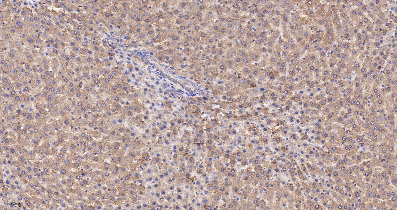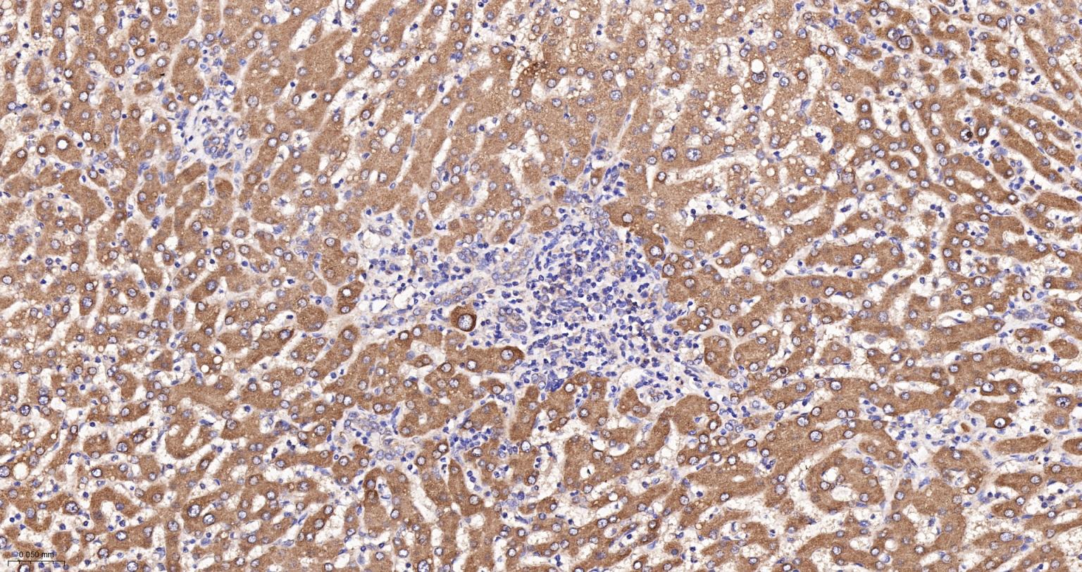 Paraformaldehyde-fixed, paraffin embedded Mouse Liver; Antigen retrieval by boiling in sodium citrate buffer (pH6.0) for 15 min; The section was incubated with ATE1 Monoclonal Antibody, Unconjugated (bsm-62759R) at 1:200 overnight at 4°C, followed by conjugation to the bs-0295G-HRP and DAB (C-0010) staining.