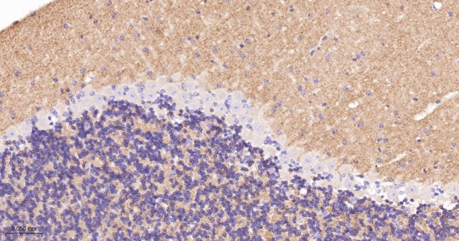 Paraformaldehyde-fixed, paraffin embedded Mouse Cerebellum; Antigen retrieval by boiling in sodium citrate buffer (pH6.0) for 15 min; The section was incubated with SNAP25 Monoclonal Antibody, Unconjugated (bsm-62983R) at 1:200 overnight at 4°C, followed by conjugation to the bs-0295G-HRP and DAB (C-0010) staining.
