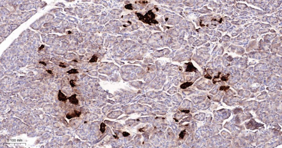 Paraformaldehyde-fixed, paraffin embedded Human Pancreas; Antigen retrieval by boiling in sodium citrate buffer (pH6.0) for 15 min; The section was incubated with TIMP-1 Monoclonal Antibody, Unconjugated (bsm-62994R) at 1:500 overnight at 4°C, followed by conjugation to the bs-0295G-HRP and DAB (C-0010) staining.