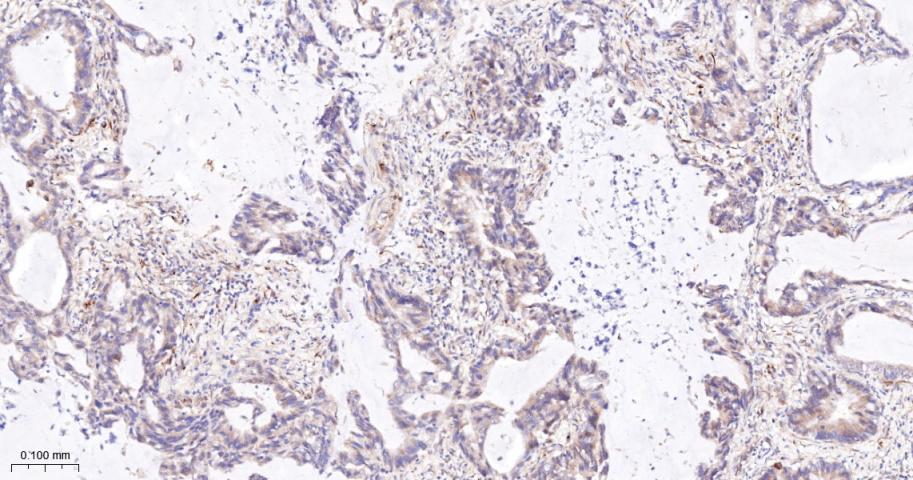 Paraformaldehyde-fixed, paraffin embedded Human Lung Cancer; Antigen retrieval by boiling in sodium citrate buffer (pH6.0) for 15 min; The section was incubated with TIMP-1 Monoclonal Antibody, Unconjugated (bsm-62994R) at 1:500 overnight at 4°C, followed by conjugation to the bs-0295G-HRP and DAB (C-0010) staining.