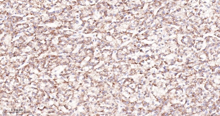 Paraformaldehyde-fixed, paraffin embedded Human Glioma; Antigen retrieval by boiling in sodium citrate buffer (pH6.0) for 15 min; The section was incubated with TIMP-1 Monoclonal Antibody, Unconjugated (bsm-62994R) at 1:500 overnight at 4°C, followed by conjugation to the bs-0295G-HRP and DAB (C-0010) staining.