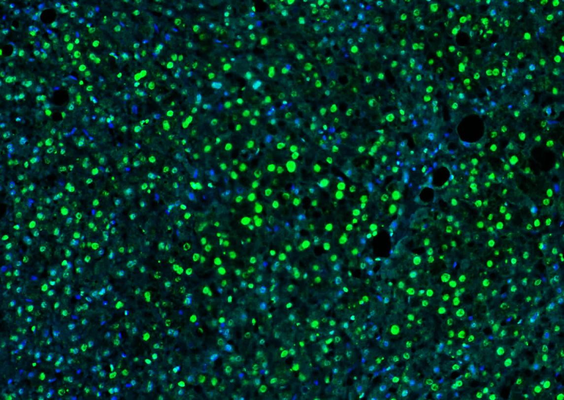 Paraformaldehyde-fixed, paraffin embedded (mouse liver); Antigen retrieval by boiling in sodium citrate buffer (pH6.0) for 15min; Blocking buffer (normal goat serum) at 37°C for 30min; Antibody incubation with (Histone H3 (Nuclear Loading Control)) Polyclonal Antibody, Unconjugated (bs-0349R) at 1:300 overnight at 4°C, followed by a conjugated Goat Anti-Rabbit IgG antibody (YF488) for 90 minutes, and DAPI for nuclei staining.