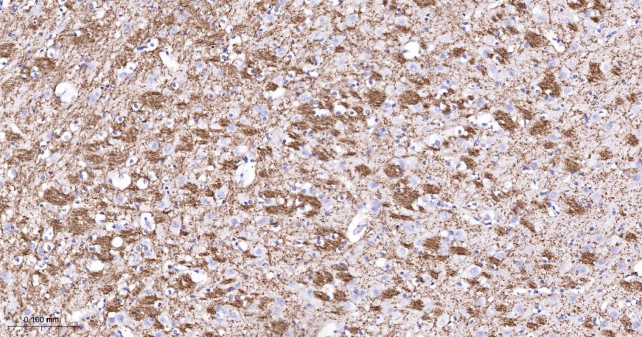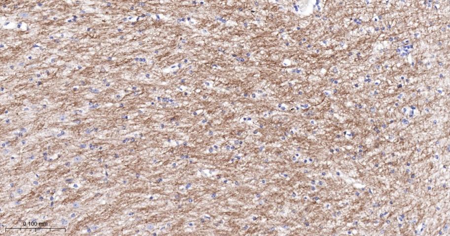 Paraformaldehyde-fixed, paraffin embedded Human Cerebrum; Antigen retrieval by boiling in sodium citrate buffer (pH6.0) for 15 min; The section was incubated with MAG Polyclonal Antibody, Unconjugated (bs-0258R) at 1:200 overnight at 4°C, followed by conjugation to the bs-0295G-HRP and DAB (C-0010) staining.