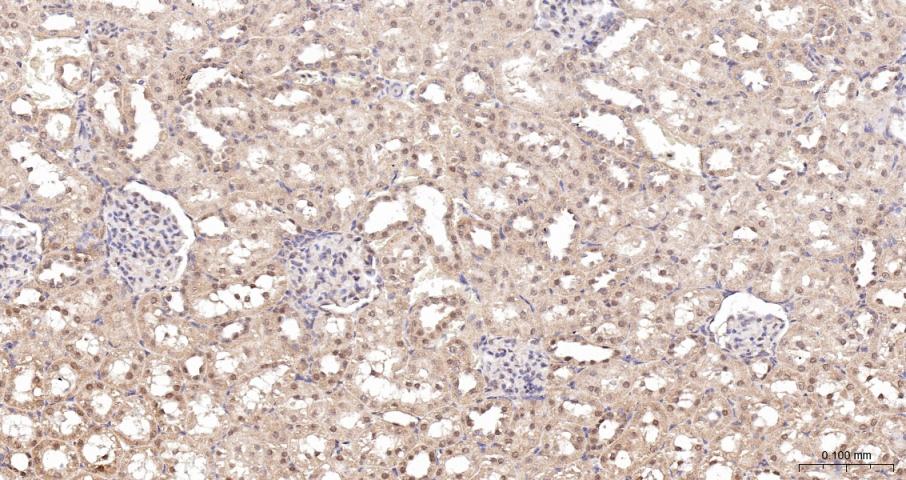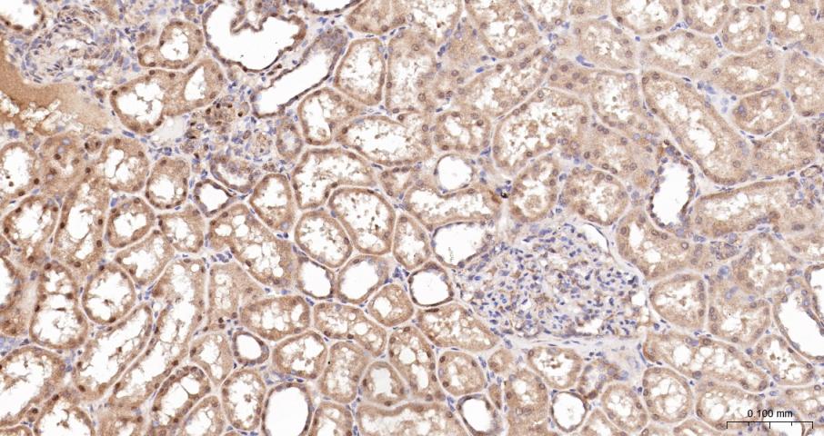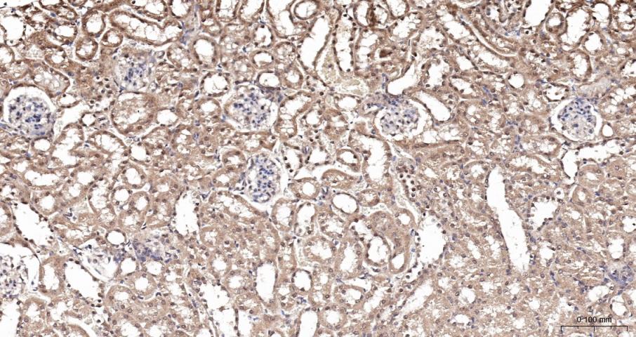 Paraformaldehyde-fixed, paraffin embedded Rat Kidney; Antigen retrieval by boiling in sodium citrate buffer (pH6.0) for 15 min; The section was incubated with GPR30 Polyclonal Antibody, Unconjugated (bs-1380R) at 1:200 overnight at 4°C, followed by conjugation to the bs-0295G-HRP and DAB (C-0010) staining.