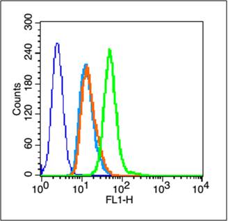 Secondary Antibody (white blue line): Goat anti-rabbit IgG-FITC,Dilution: 1μg /test.